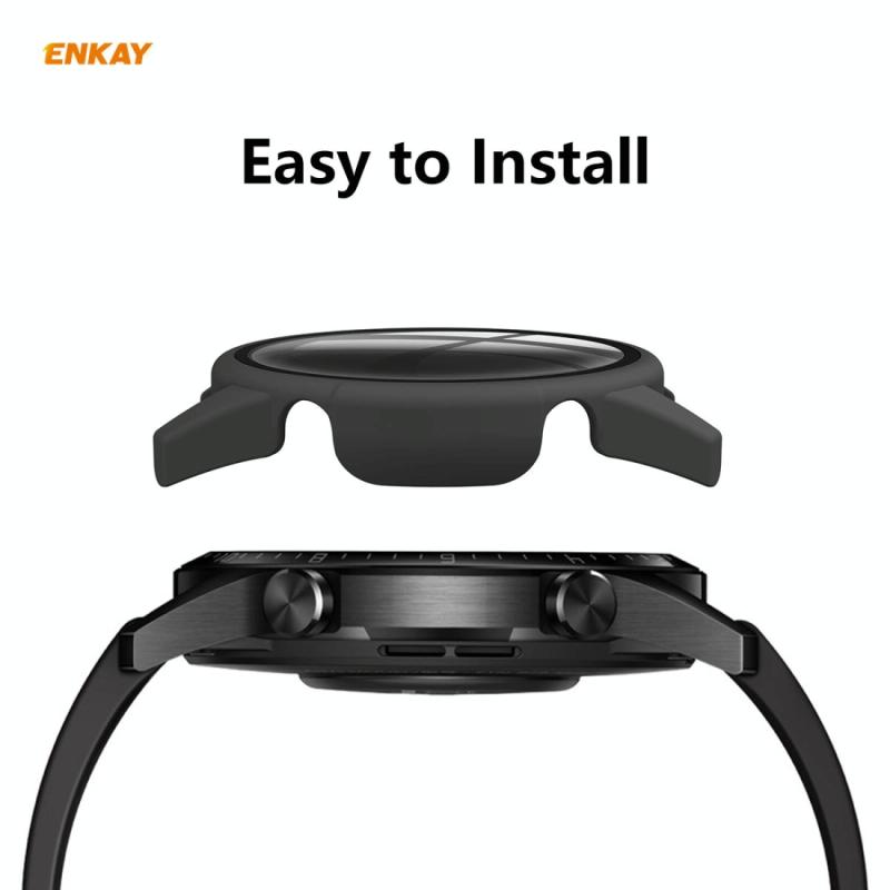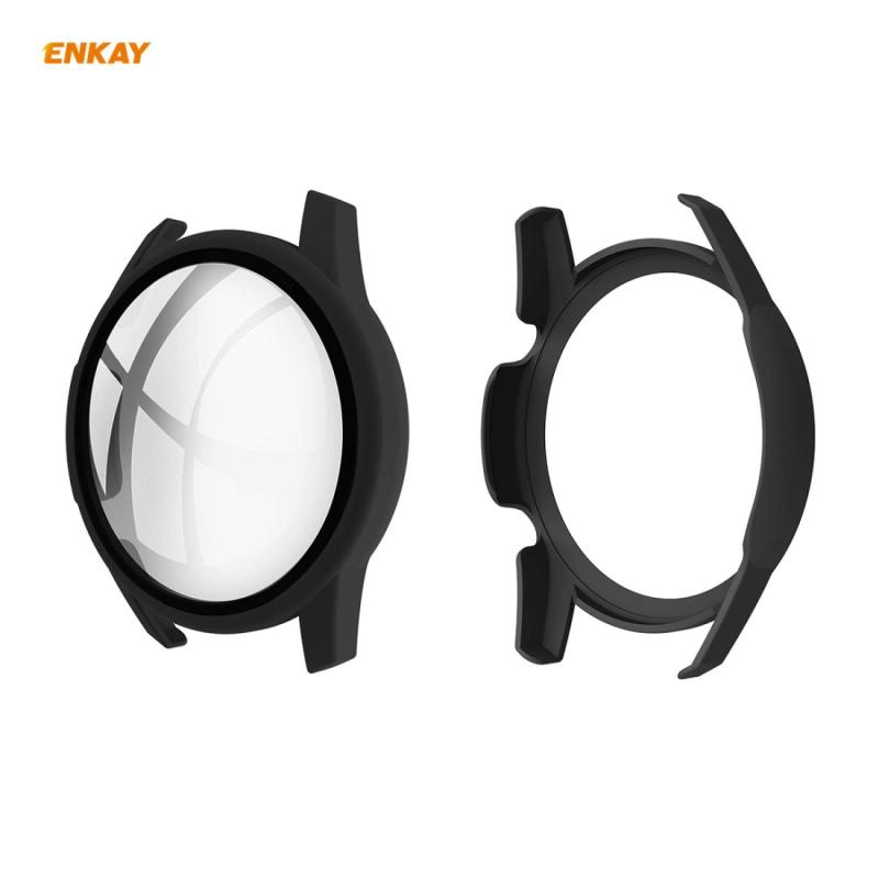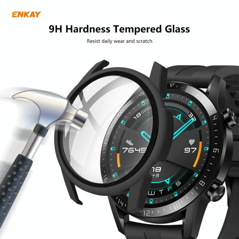 For Huawei Watch GT 2 46mm ENKAY Hat-Prince ENK-AC8202 Full Coverage PC Frosted Case + 9H Tempered Glass Protector(Black) (ENKAY)