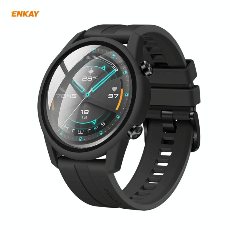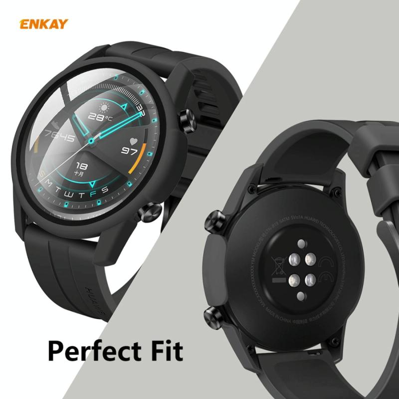 For Huawei Watch GT 2 46mm ENKAY Hat-Prince ENK-AC8202 Full Coverage PC Frosted Case + 9H Tempered Glass Protector(Transparent) (ENKAY)