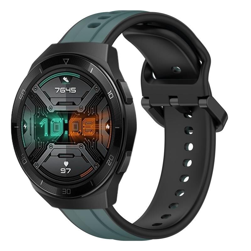 Για το Huawei Watch GT 2E 22mm Convex Loop Two-Color Silicone Watch Band(Olive Green + Black)