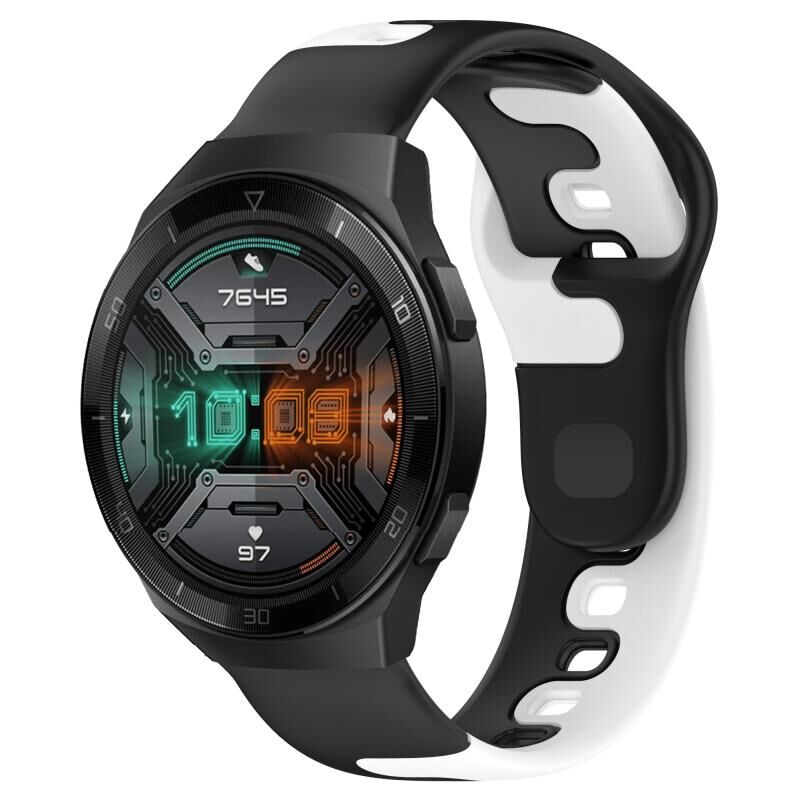 Για το Huawei Watch GT 2E 22 χιλιοστά διπλό χρώμα σιλικόνης ρολόι μπάντα ρολογιών (μαύρο + λευκό)