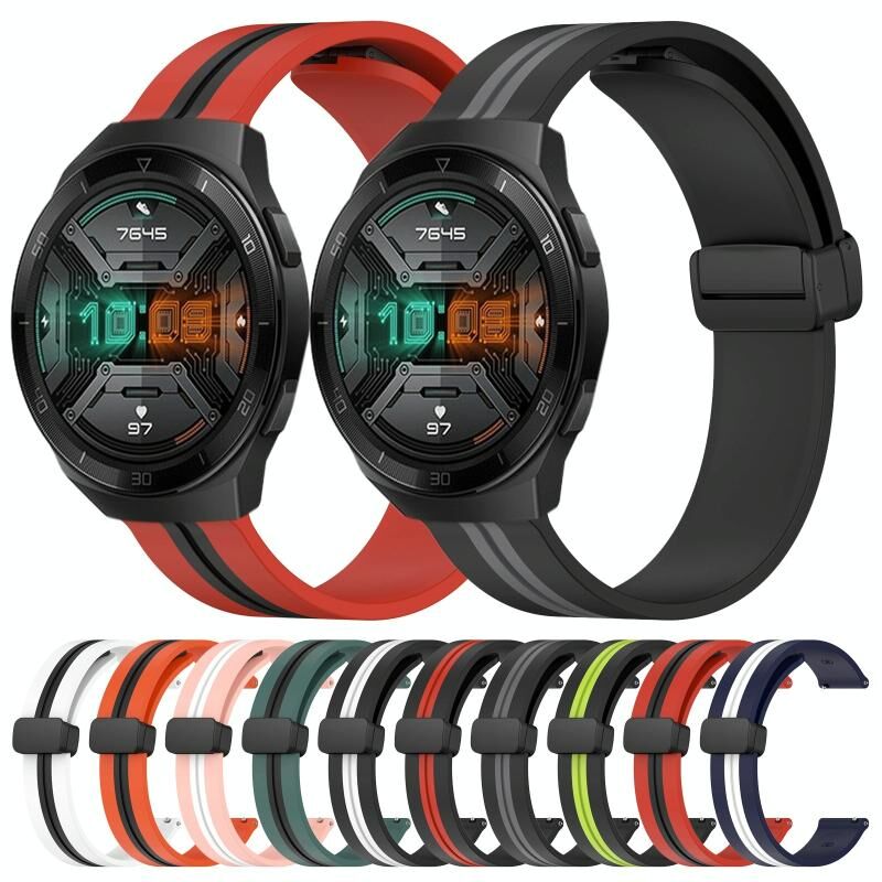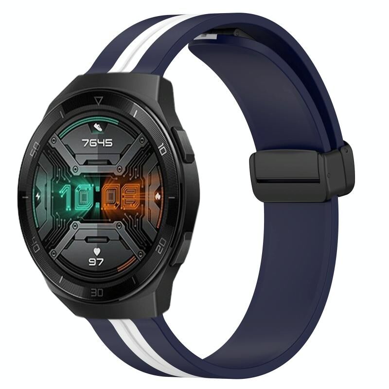 Για το Huawei Watch GT 2E 22mm Πτυσσόμενο μαγνητικό κούμπωμα ζώνη ρολογιού σιλικόνης (Μπλε μεσάνυχτα + Λευκό)