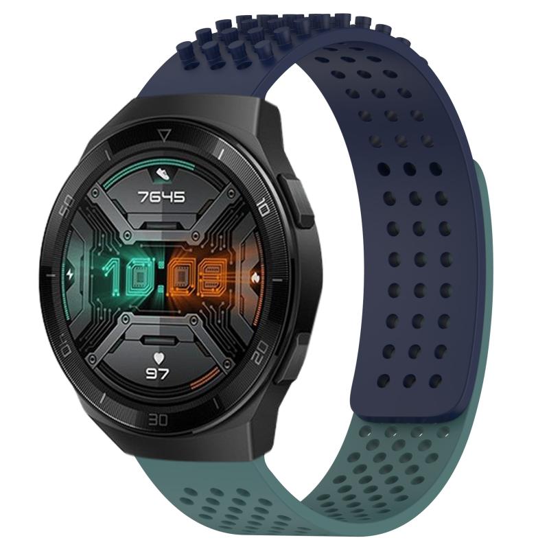 For Huawei Watch GT 2E 22mm Holes Breathable 3D Dots Silicone Watch Band(Midnight Blue+Olive Green)