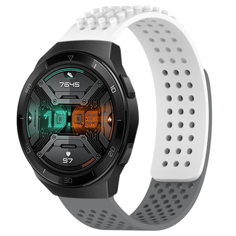 For Huawei Watch GT 2E 22mm Holes Breathable 3D Dots Silicone Watch Band(White+Grey)