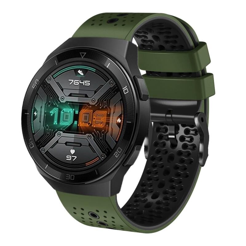 Για το Huawei Watch GT 2E 22mm διάτρητη ζώνη ρολογιού σιλικόνης δύο χρωμάτων (πράσινο στρατού + μαύρο)