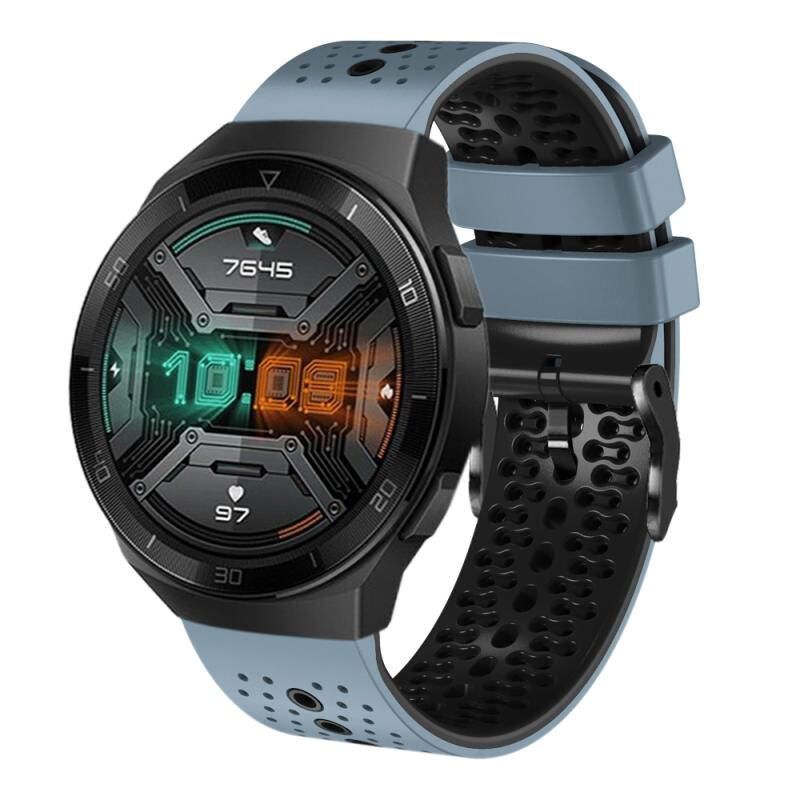 Για το Huawei Watch GT 2E 22mm διάτρητη ζώνη ρολογιού σιλικόνης δύο χρωμάτων (μπλε + γκρι)