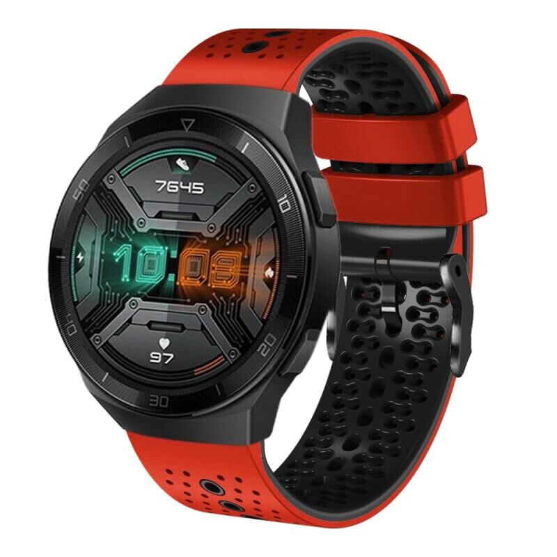 Για το Huawei Watch GT 2E 22mm διάτρητη ζώνη ρολογιού σιλικόνης δύο χρωμάτων (κόκκινο+μαύρο)