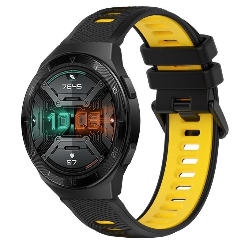 Για το Huawei Watch GT 2E 22mm Αθλητική ζώνη ρολογιού σιλικόνης δύο χρωμάτων (μαύρο + κίτρινο)