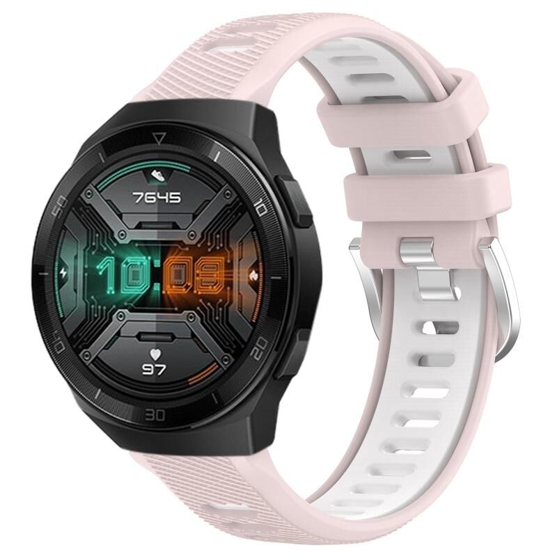 Για Huawei Watch GT 2E 22mm Αθλητισμός Δύο χρώματα χάλυβα πόρπη σιλικόνης ρολόι μπάντα ρολογιών (ροζ + λευκό)