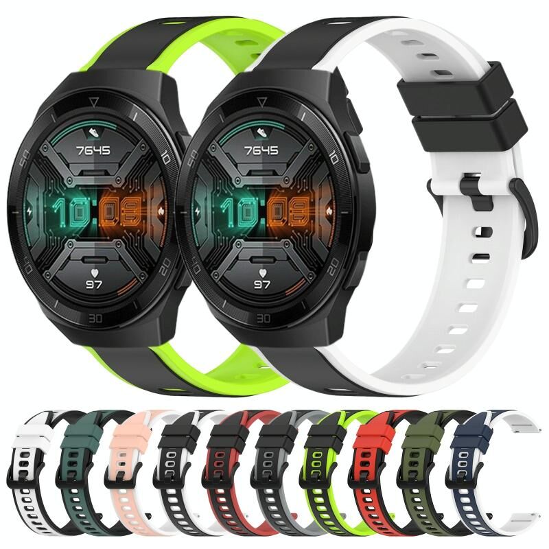 Για το Huawei Watch GT 2E 22 χιλιοστά δύο χρωμάτων σιλικόνης ρολόι μπάντα ρολογιού (λευκό + μαύρο)