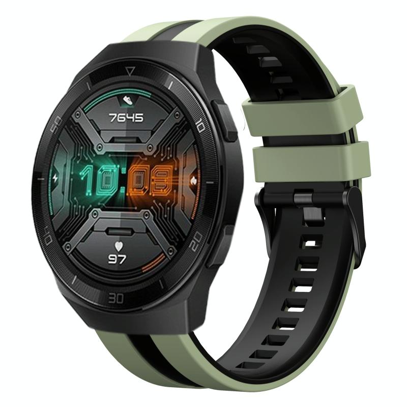 For Huawei Watch GT 2E 22mm Two Color Sports Silicone Watch Band(Light Green+Black)