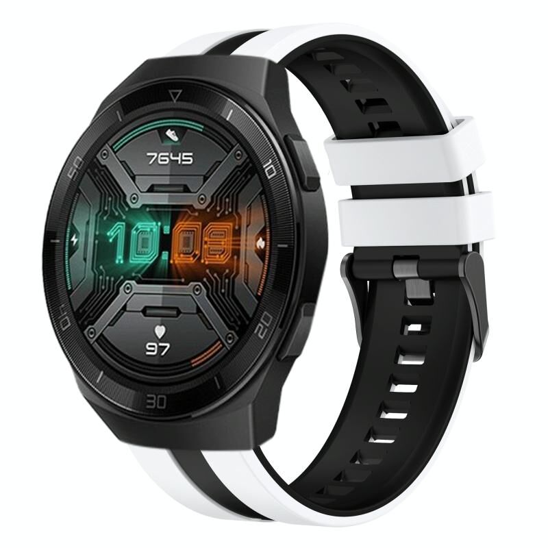 Για το Huawei Watch GT 2E 22mm δύο χρωμάτων αθλητική ζώνη ρολογιού σιλικόνης (λευκό + μαύρο)