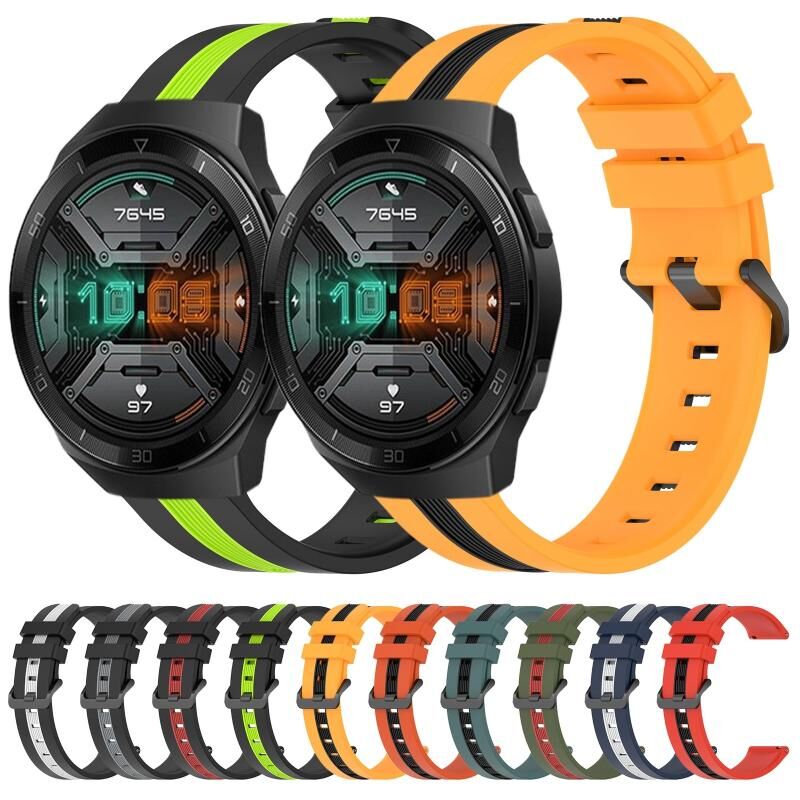 Για Huawei Watch GT 2E 22mm Κάθετη ζώνη ρολογιού σιλικόνης δύο χρωμάτων (πορτοκαλί + μαύρο)