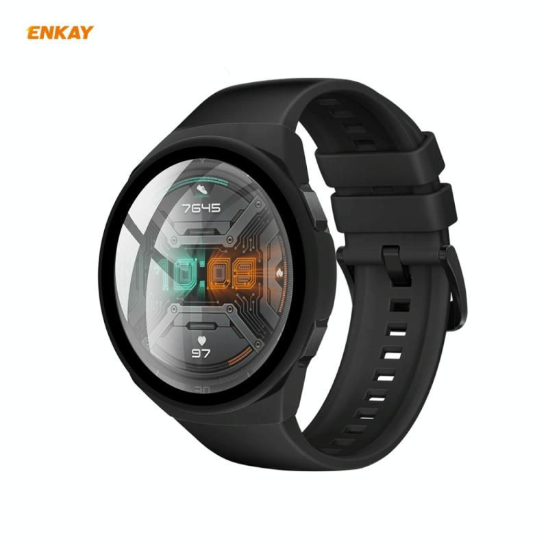 For Huawei Watch GT 2e 46mm ENKAY Hat-Prince ENK-AC8203 Full Coverage PC Frosted Case + 9H Tempered Glass Film(Green) (ENKAY)
