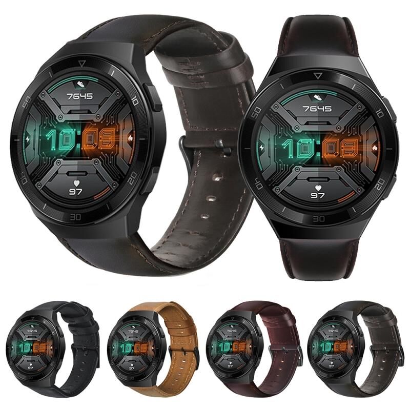 For Huawei Watch GT 2e Oil Wax Genuine Leather Watch Band(Black)