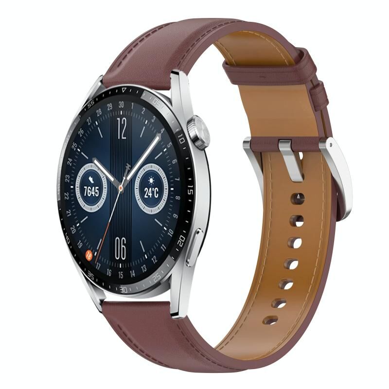 For Huawei Watch GT 3 42mm Stainless Steel Quick Release Buckle 20mm Genuine Leather Watch Band(Dark Brown)