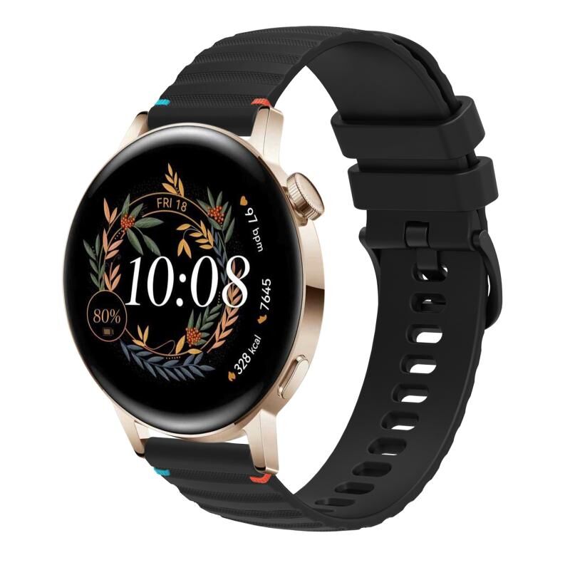 For Huawei Watch GT 3 42mm Wavy Dotted Stitched 20mm Silicone Watch Band(Black)