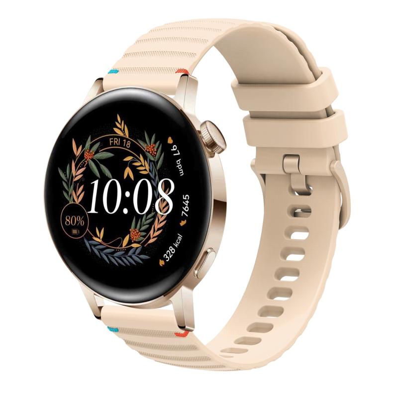 For Huawei Watch GT 3 42mm Wavy Dotted Stitched 20mm Silicone Watch Band(Cream Coloured)