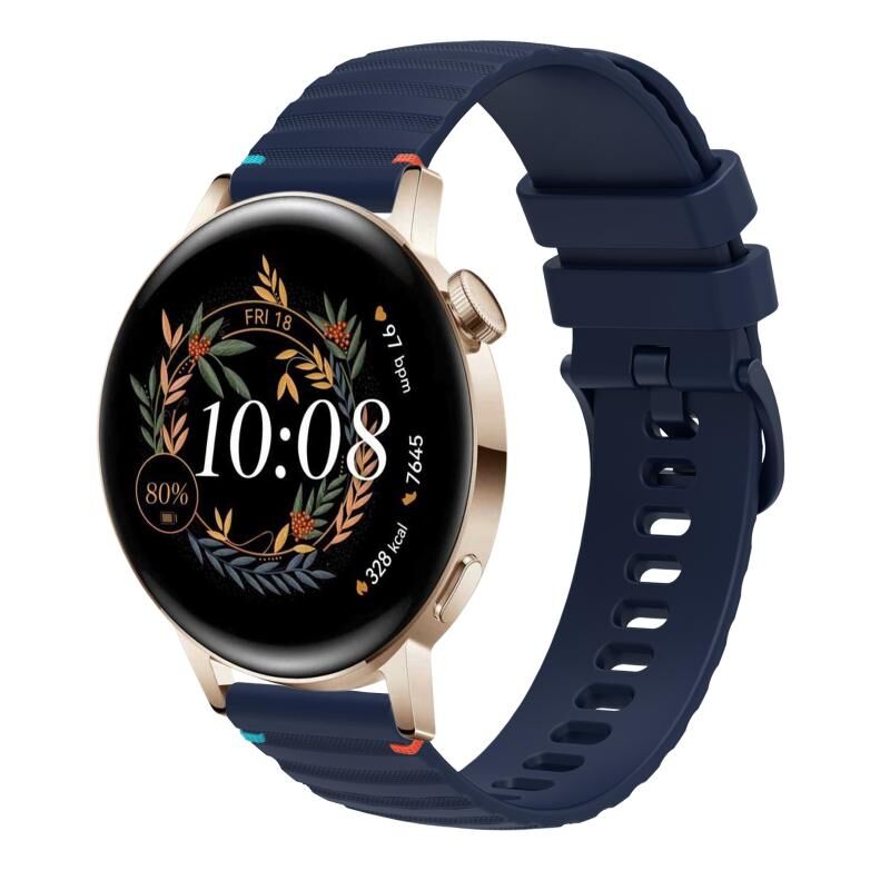 For Huawei Watch GT 3 42mm Wavy Dotted Stitched 20mm Silicone Watch Band(Navy Blue)