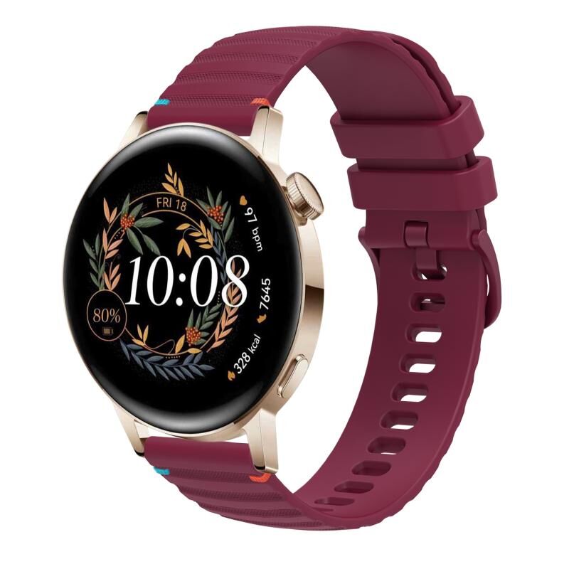 For Huawei Watch GT 3 42mm Wavy Dotted Stitched 20mm Silicone Watch Band(Wine Red)