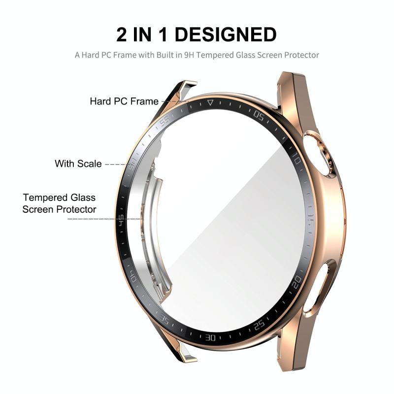For Huawei Watch GT 3 46mm ENKAY PC Frame + Tempered Glass Protector Case With Scale(Pink) (ENKAY)