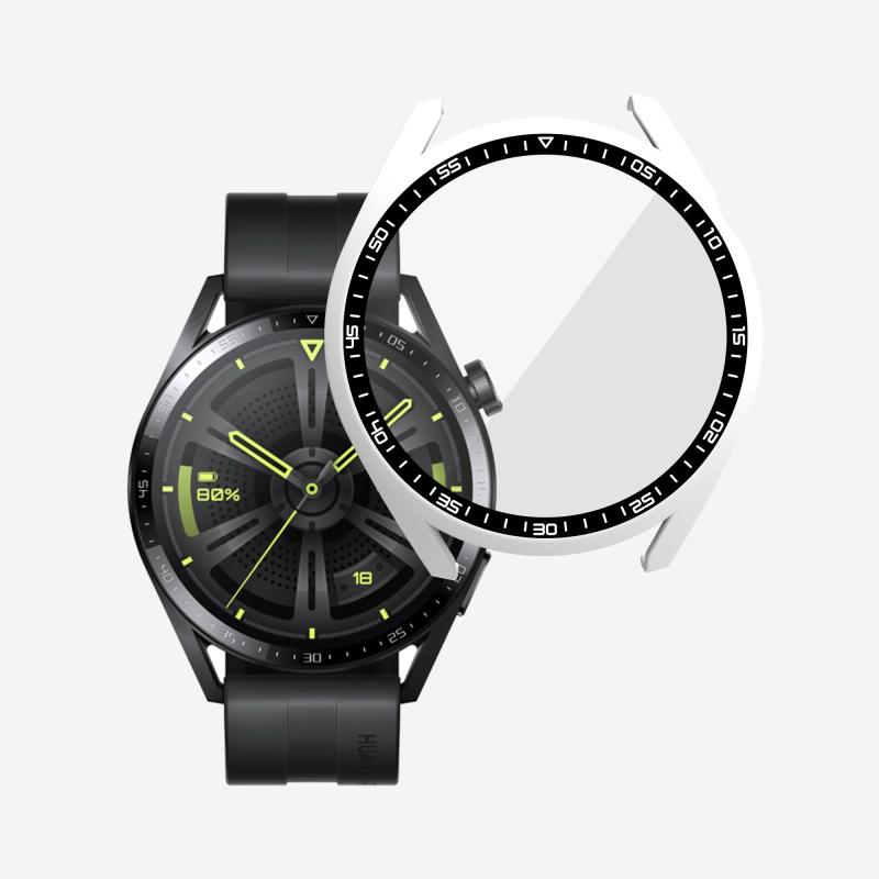 For Huawei Watch GT 3 46mm PC + Tempered Glass Watch Protective Case(White)