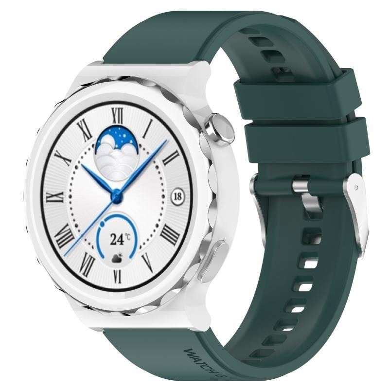 For Huawei Watch GT 3 Pro 43mm 20mm Protruding Head Silver Buckle Silicone Watch Band(Dark Green)