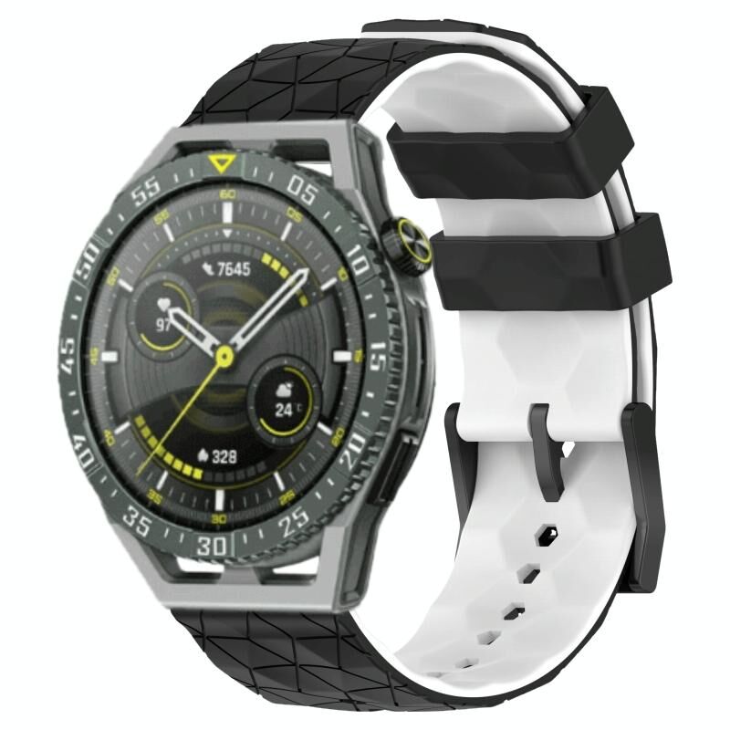 Για το Huawei Watch GT 3 SE 22 χιλιοστά ποδοσφαιρικό μοτίβο δύο χρωμάτων σιλικόνης ρολόι μπάντα ρολογιού (μαύρο + λευκό)