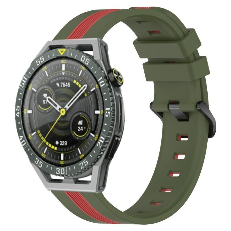 Για Huawei Watch GT 3 SE 22mm Κάθετη ζώνη ρολογιού σιλικόνης δύο χρωμάτων (πράσινο στρατού + κόκκινο)