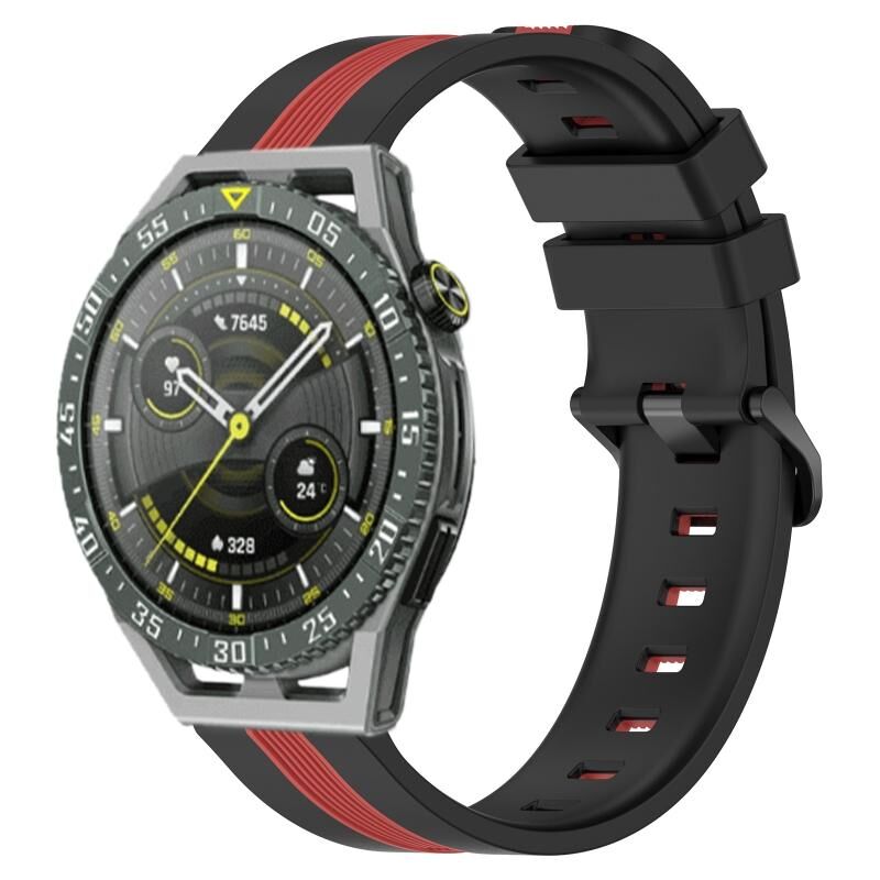 Για Huawei Watch GT 3 SE 22mm Κάθετη ζώνη ρολογιού σιλικόνης δύο χρωμάτων (μαύρο + κόκκινο)