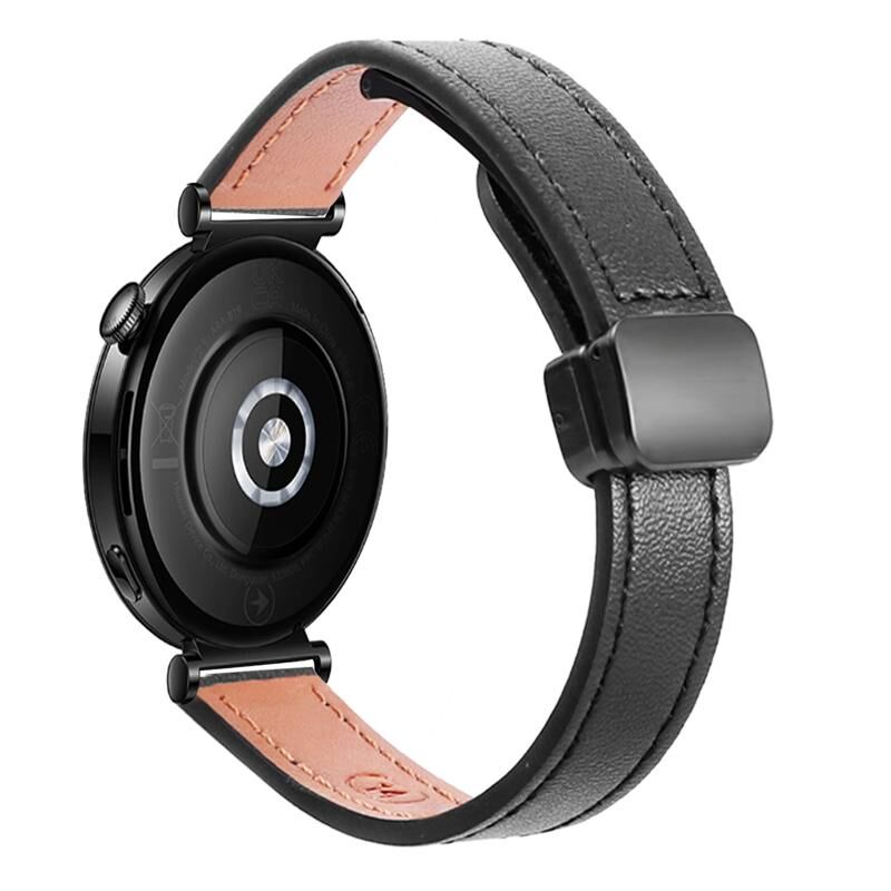 Για το Huawei Watch GT 4 41mm 18mm λεπτό μαγνητικό λουράκι μικροϊνών δερμάτινο λουράκι ρολογιού (μαύρο)