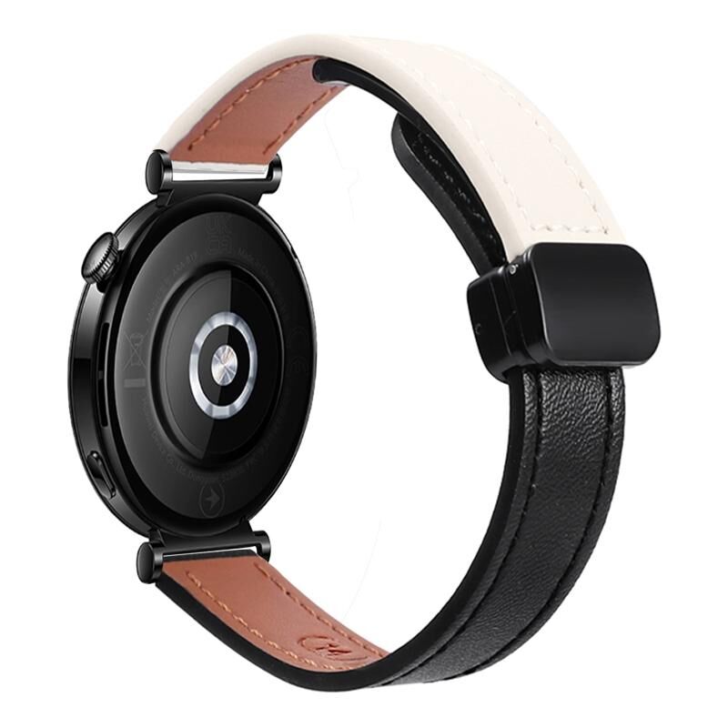 Για το Huawei Watch GT 4 41mm 18mm λεπτό μαγνητικό λουράκι μικροϊνών δερμάτινο λουράκι ρολογιού (Μαύρο+Απρικό)