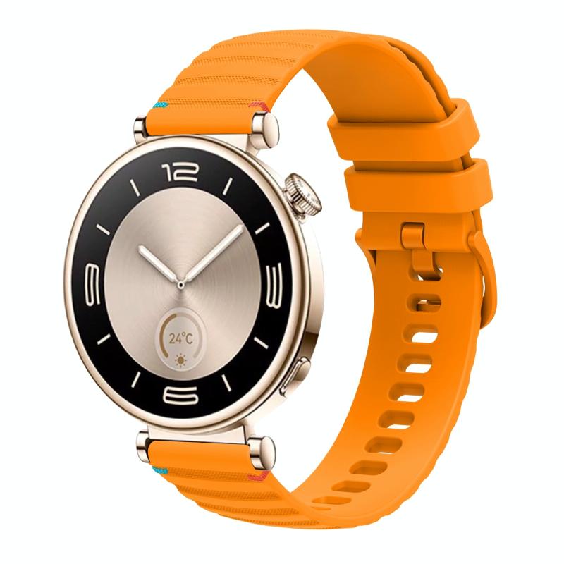 For Huawei Watch GT 4 41mm Wavy Dotted Stitched 18mm Silicone Watch Band(Amber Yellow)