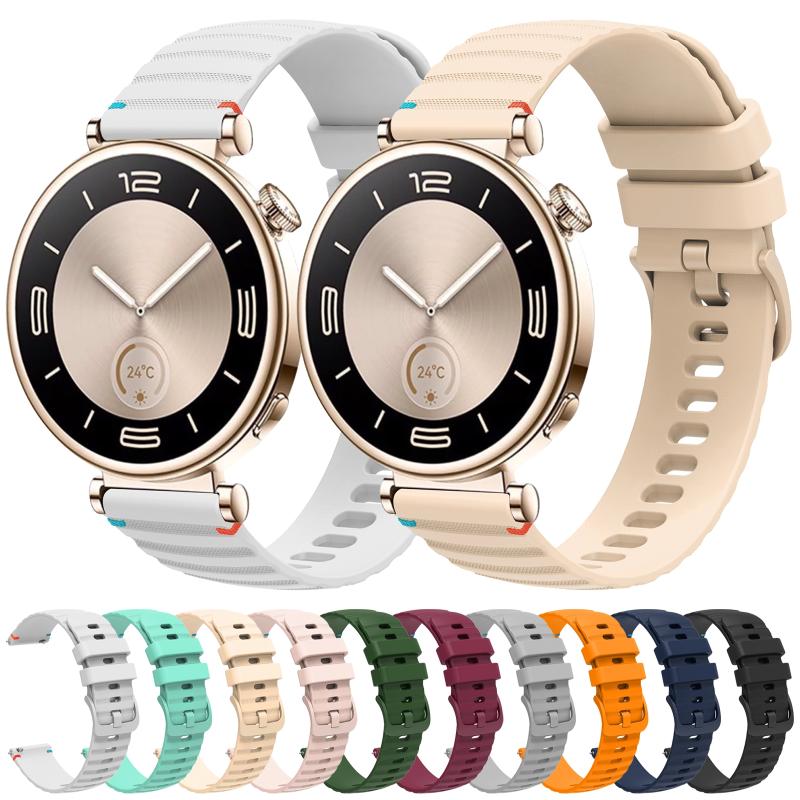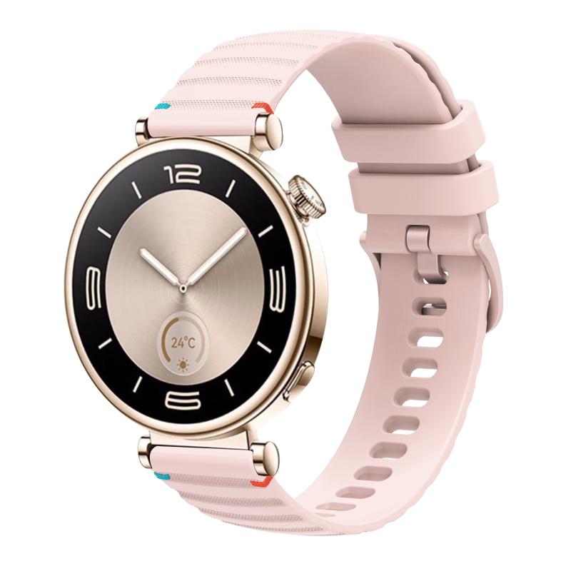 For Huawei Watch GT 4 41mm Wavy Dotted Stitched 18mm Silicone Watch Band(Rose Pink)