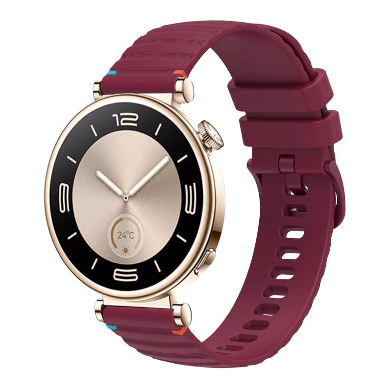 For Huawei Watch GT 4 41mm Wavy Dotted Stitched 18mm Silicone Watch Band(Wine Red)