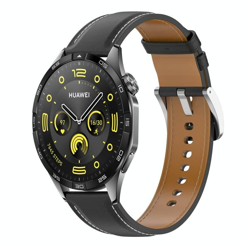 Για το Huawei Watch GT 4 46mm από ανοξείδωτο ατσάλι με πόρπη γρήγορης απελευθέρωσης 22mm από γνήσιο δέρμα (μαύρο)