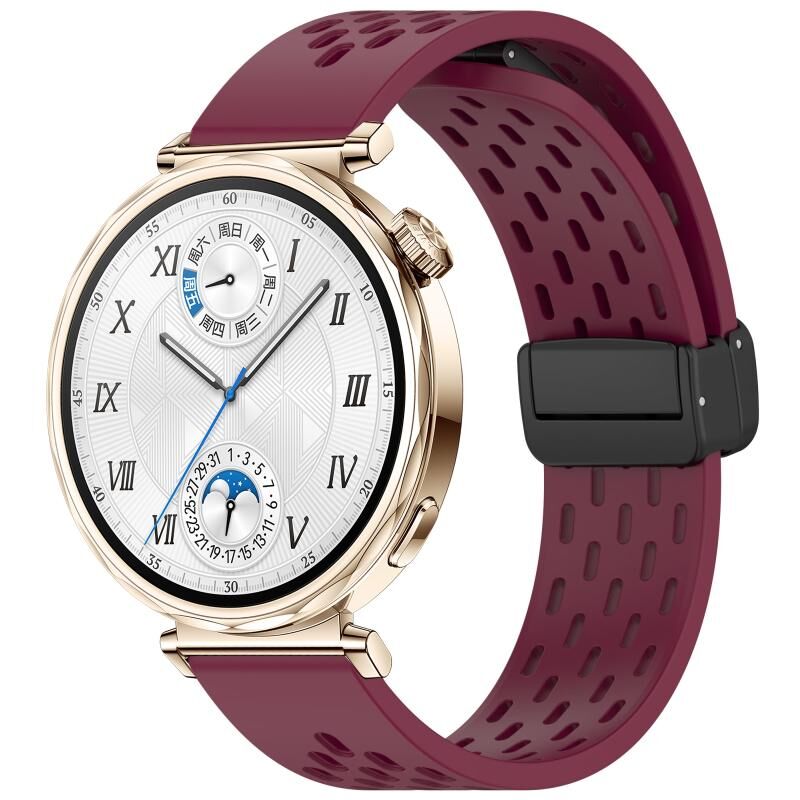 Για Huawei Watch GT 5 41mm Πτυσσόμενο μαγνητικό λουράκι σιλικόνης (κόκκινο κρασί)