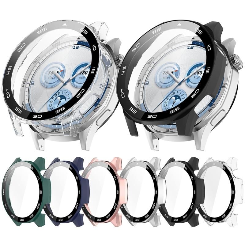 Για το Huawei Watch GT 5 46mm Διαβαθμισμένο στυλ Tempered Glass Film Integrated PC Watch Case (Bright Rose Gold)