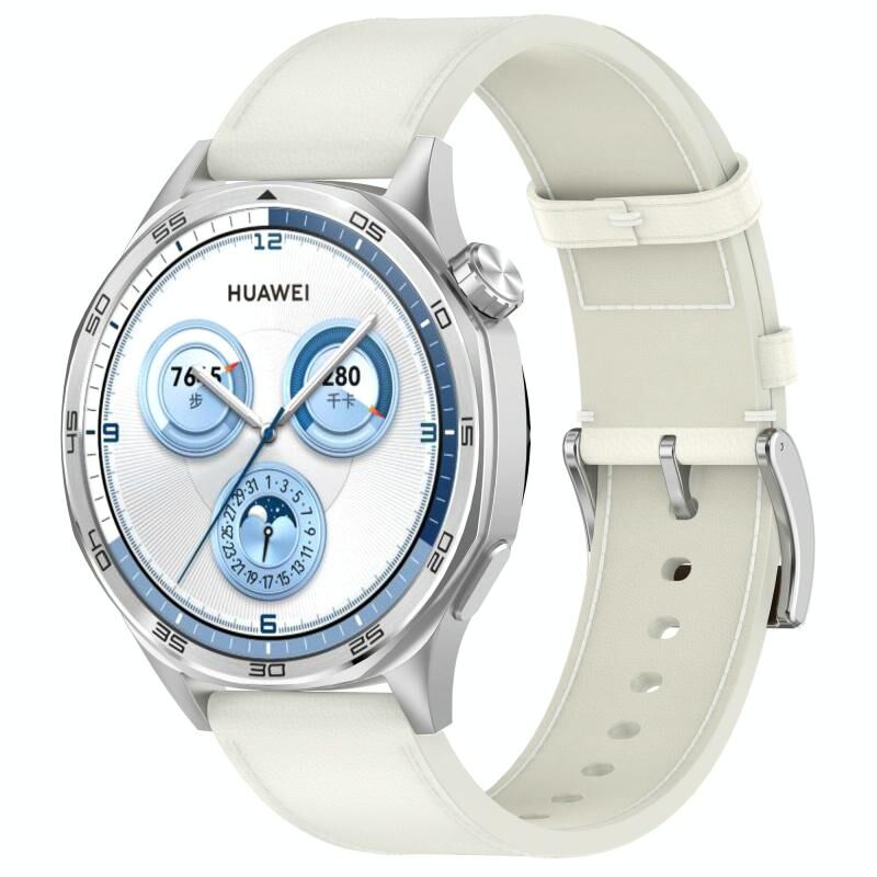 For Huawei Watch GT 5 46mm Press Button 22mm Leather Watch Band(White)