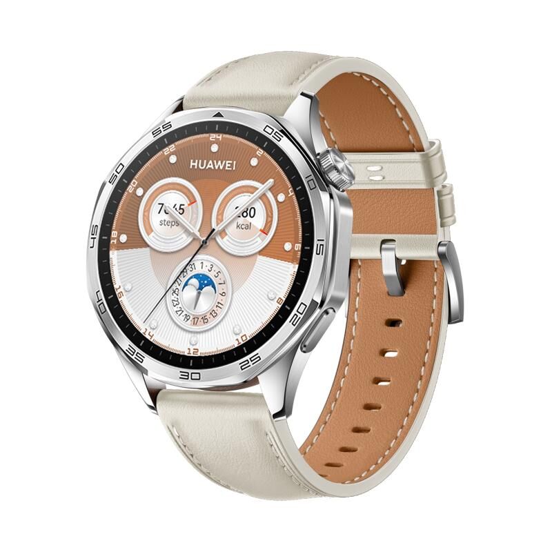 Για Huawei Watch GT 5 46mm Ασημένια πόρπη γνήσιο δερμάτινο λουράκι ρολογιού (κρεμώδες λευκό)