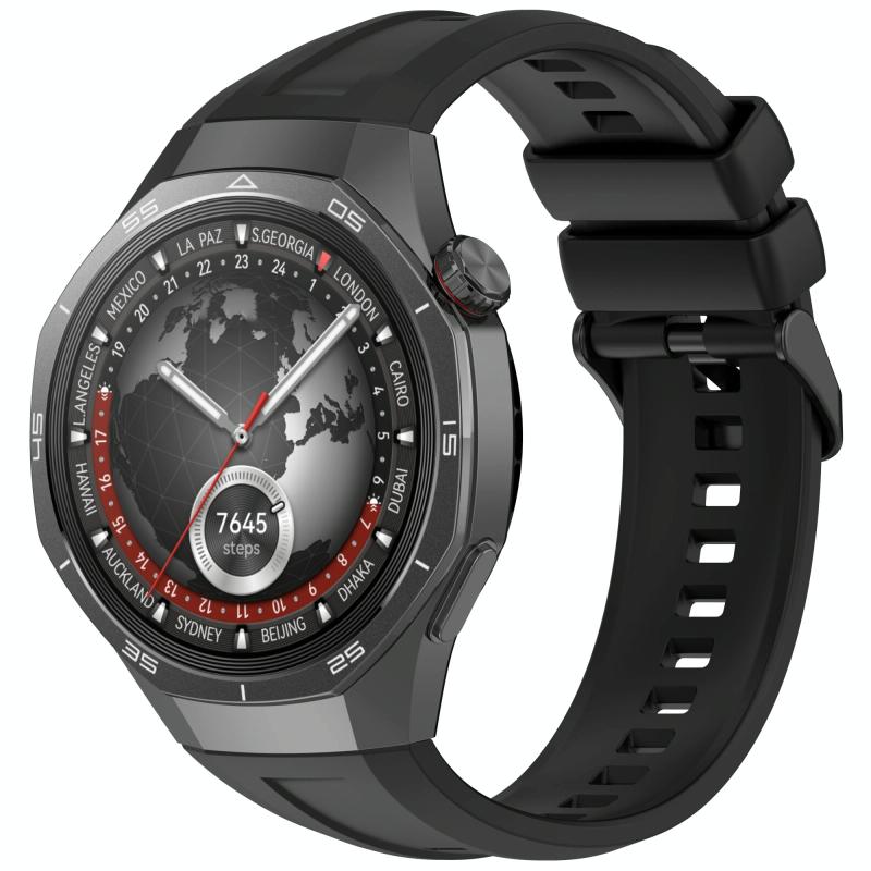 For Huawei Watch GT 5 Pro 46mm Black Steel Buckle Liquid Silicone Watch Band(Black)