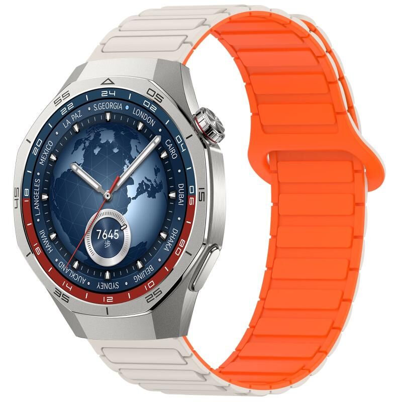 Για Huawei Watch GT 5 Pro 46mm Δύο χρώματα μαγνητική πόρπη σιλικόνης ρολόι μπάντα ρολογιών (Starlight πορτοκαλί)
