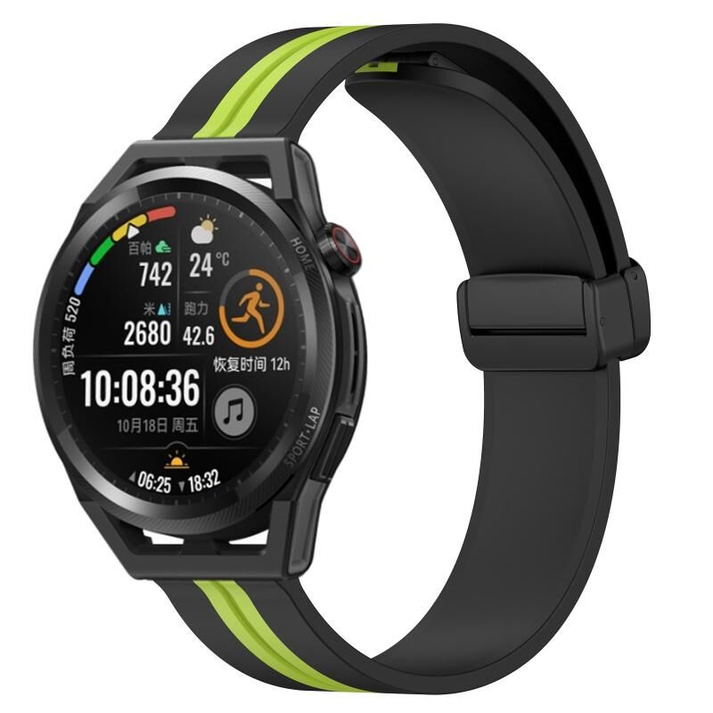 Για Huawei Watch GT Runner 22mm Πτυσσόμενο μαγνητικό κούμπωμα ζώνη ρολογιού σιλικόνης (μαύρο + πράσινο χρώμα)