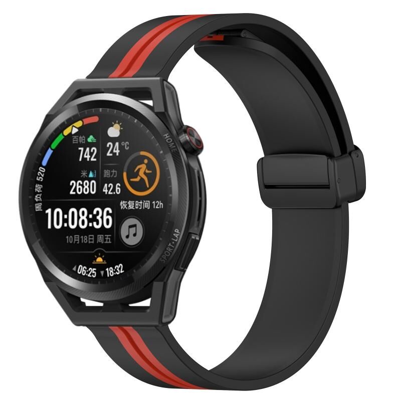 Για Huawei Watch GT Runner 22mm Πτυσσόμενο μαγνητικό κούμπωμα ζώνη ρολογιού σιλικόνης (μαύρο + κόκκινο)