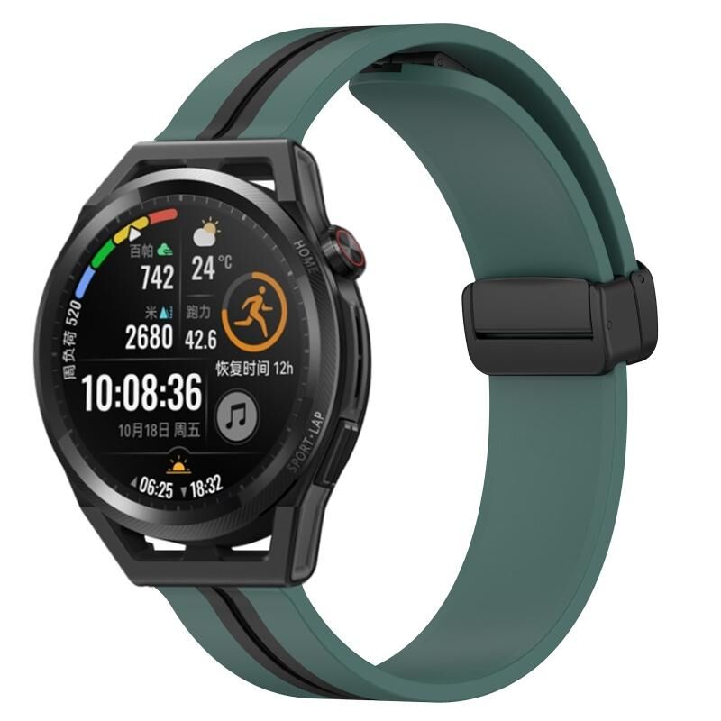 Για Huawei Watch GT Runner 22mm Πτυσσόμενο μαγνητικό κούμπωμα ζώνη ρολογιού σιλικόνης (Olive Green + Μαύρο)