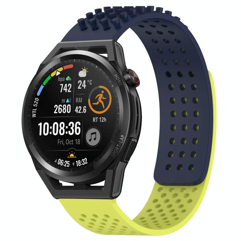 For Huawei Watch GT Runner 22mm Holes Breathable 3D Dots Silicone Watch Band(Midnight Blue+Lime Green)