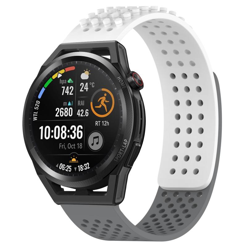 For Huawei Watch GT Runner 22mm Holes Breathable 3D Dots Silicone Watch Band(White+Grey)
