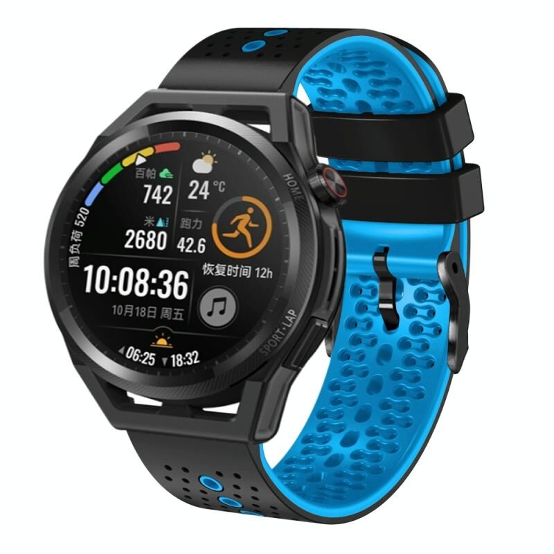 Για το Huawei Watch GT Runner 22mm διάτρητη ζώνη ρολογιού σιλικόνης δύο χρωμάτων (μαύρο + μπλε)