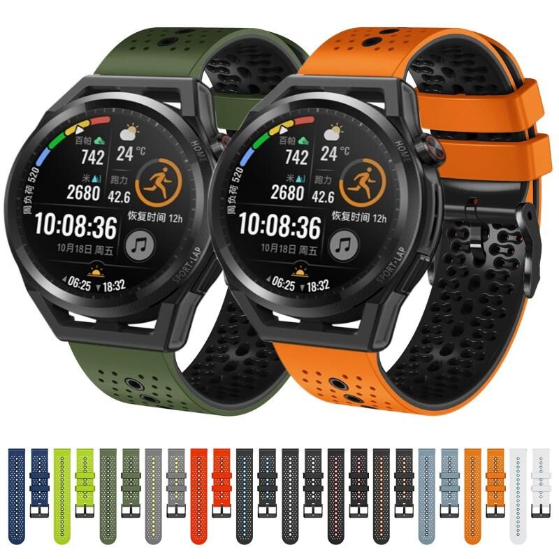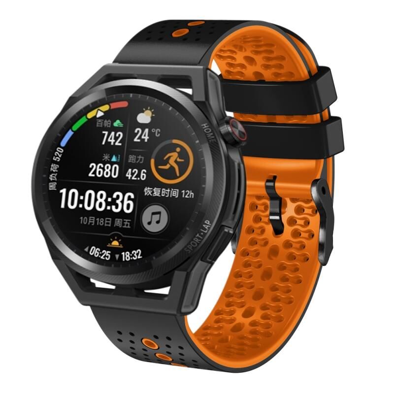 Για το Huawei Watch GT Runner 22mm διάτρητη ζώνη ρολογιού σιλικόνης δύο χρωμάτων (μαύρο + πορτοκαλί)