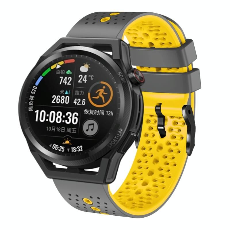 Για το Huawei Watch GT Runner 22mm διάτρητη ζώνη ρολογιού σιλικόνης δύο χρωμάτων (γκρι + κίτρινο)