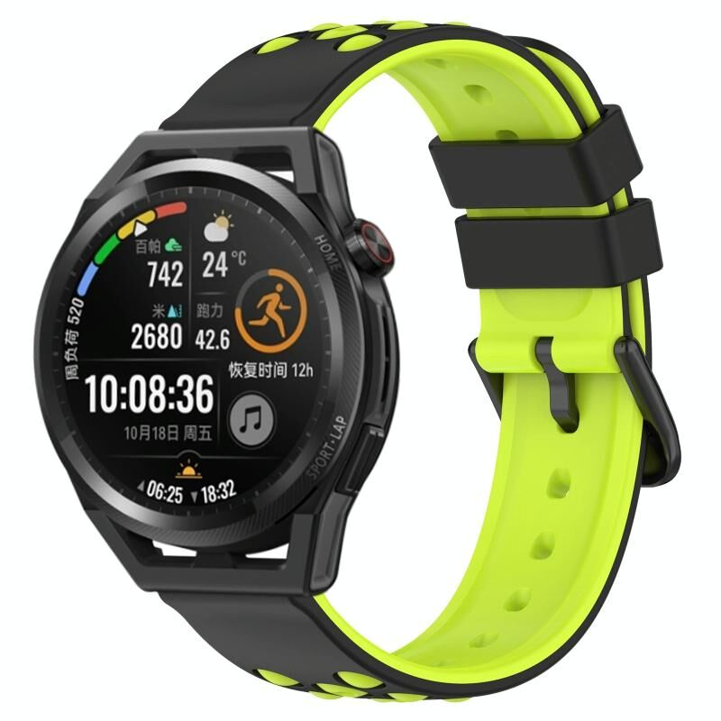 Για το Huawei Watch GT Runner 22mm Δύο χρωμάτων πορώδες λουράκι ρολογιού σιλικόνης (Μαύρο+Lime Green)